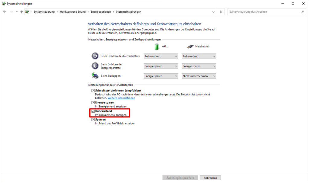 In den Energieeinstellungen kann man den Ruhezustand in Windows 10 sehr einfach aktivieren: